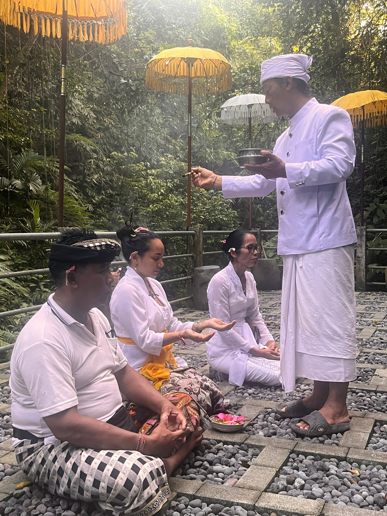 That same day – I returned to Pura Beji with the local priest to do two big ceremonies, so that my karma with the river may be purified and protected, and also the spirit of the river will be cleansed for the village. The first one was Ngaturan Pekeling which is for accidents.
