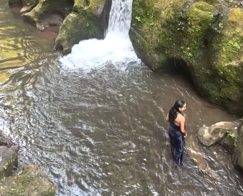 Despite the grey rainy clouds in the far distance, I hopped on my motorbike and made my way. By the time I reached the temple, I was still dry. I made my offerings to the waterfall and the temple. As I practiced the Melukat ceremony – it started to rain. It felt like good timing, arriving, offering, and welcoming the gift of rain through purification. I was in full surrender to nature.